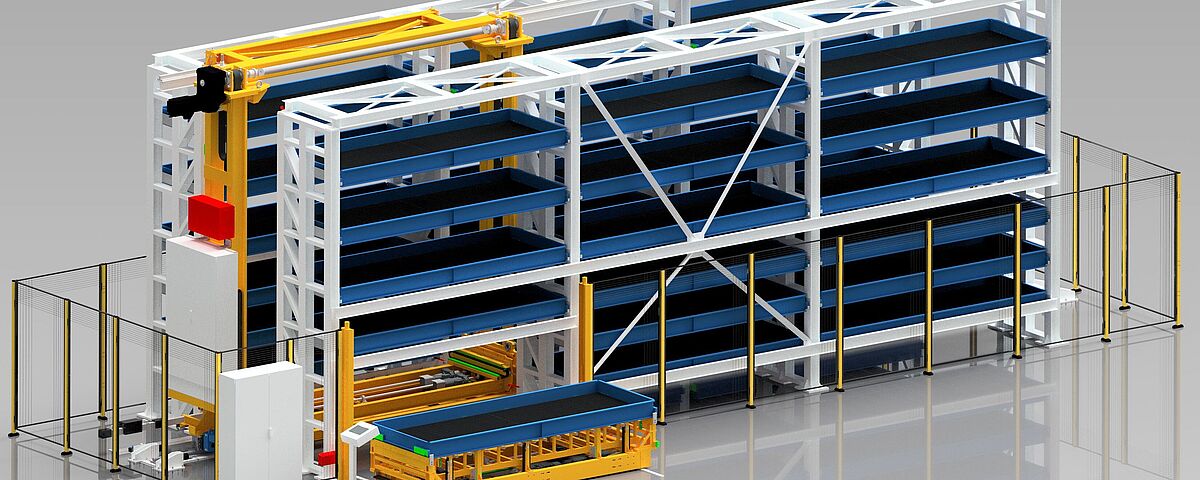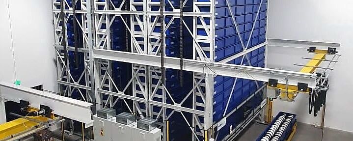3. Le TowerMat TM-RE est la version la plus puissante et est conçu pour de grandes quantités de stockage, avec un transstockeur déplaçable latéralement le long de plusieurs tours de stockage.