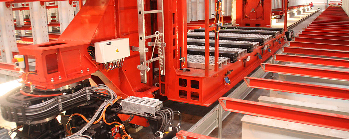OHRA propose un transstockeur spécial pour le stockage automatique des europalettes et des caisses métalliques d’une hauteur maximale de 12 mètres, qui traduit une véritable alternative aux chariots pour allées étroites. Le transstockeur est capable d'effectuer des virages, sa conception est modulaire et économique. Un mécanisme de commande spécial lui permet de se déplacer directement sur le sol du hall.