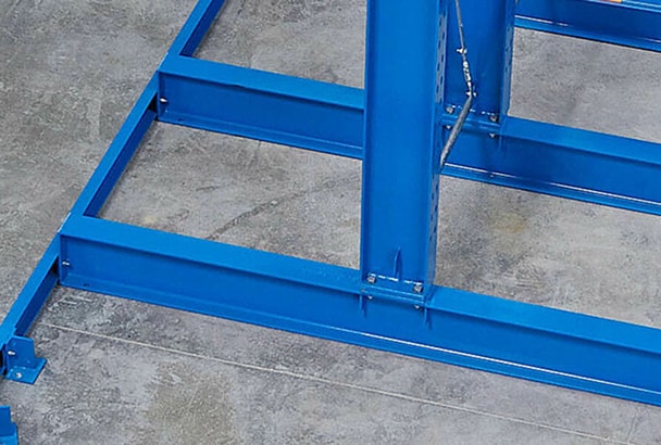 • Boulonné à fleur avec le pied du montant, assurant ainsi un appui total sur le pied du montant sans plaques de liaison saillantes. Par conséquent, aucune détérioration lors des opérations de stockage et de déstockage.