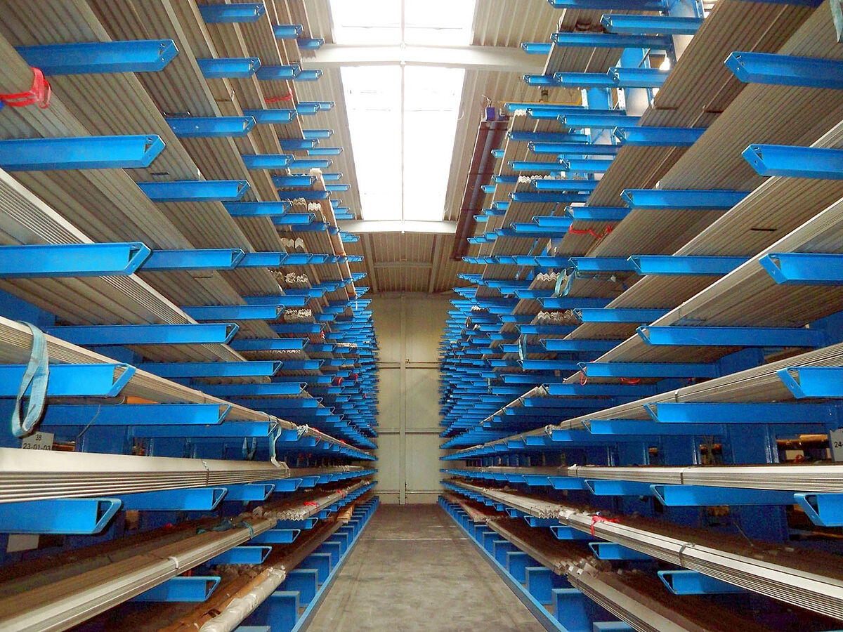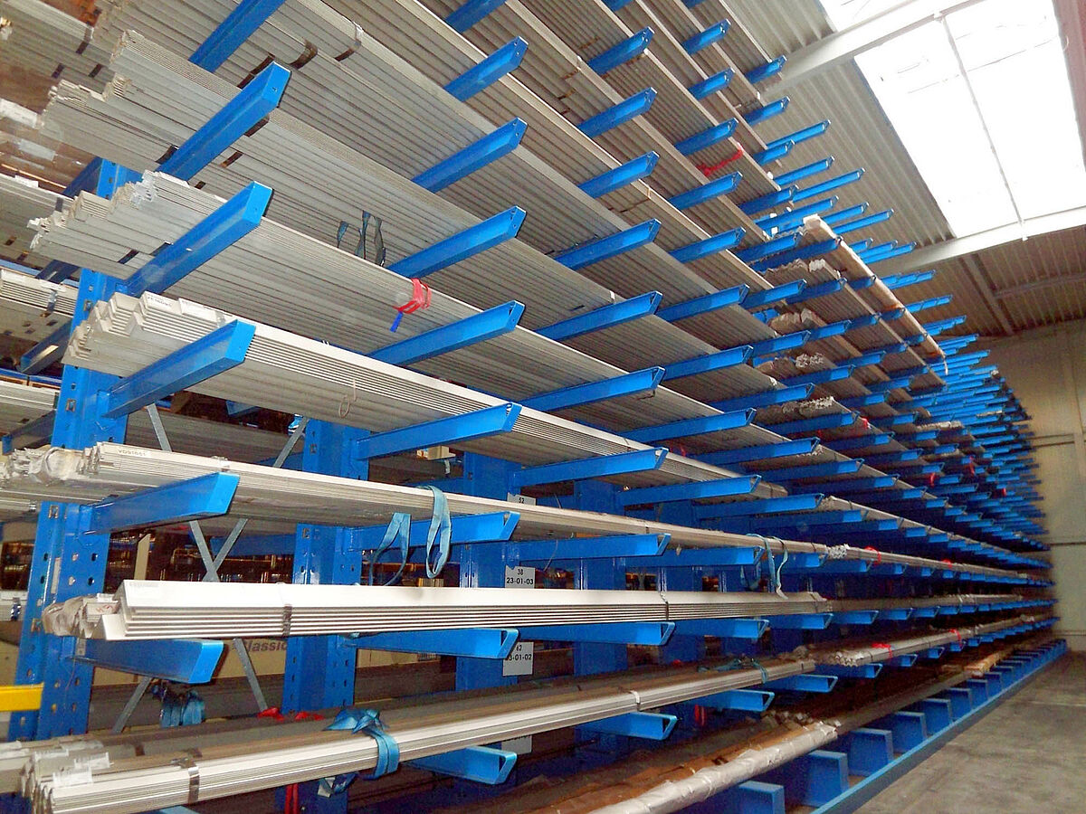 La solution était un système de rayonnage cantilever avec une hauteur de 7.500 mm qui permettait 14 niveaux de stockage et une charge admissible de 1200 kg sur chaque bras de longueur 1.250mm.