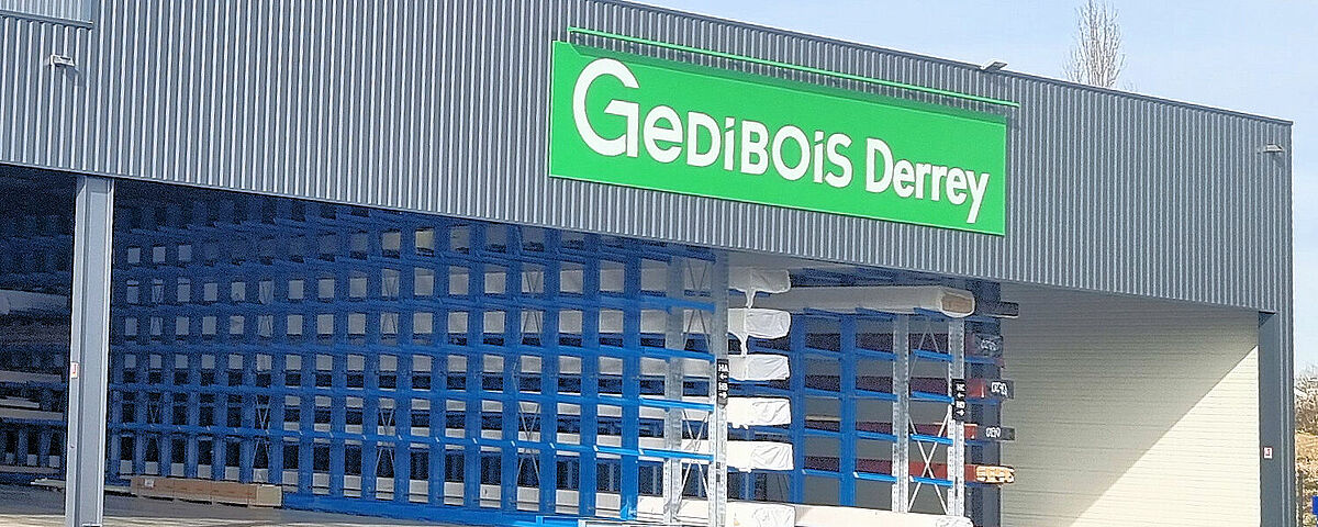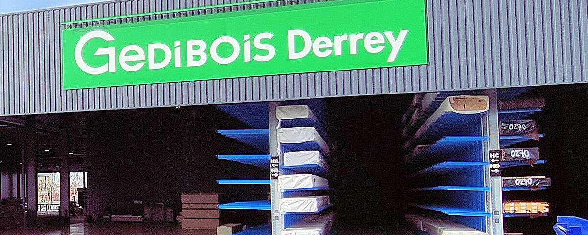 La nouvelle succursale de Gedibois Derrey offre aux clients professionnels et privés une gamme complète de produits en bois, allant du bois de construction aux revêtements de sol en passant par les bardages, l’isolation, les panneaux et les menuiseries. Outre une surface d'exposition moderne de 1.000 mètres carrés, le nouveau bâtiment comprend une surface de stockage d'environ 7.000 mètres carrés. Environ 2.500 articles sont constamment en stock chez Gedibois Derrey. Le stock se trouve d'une part dans un entrepôt fermé, et d'autre part dans un bâtiment partiellement ouvert, qui abrite un espace drive-in pour les clients.