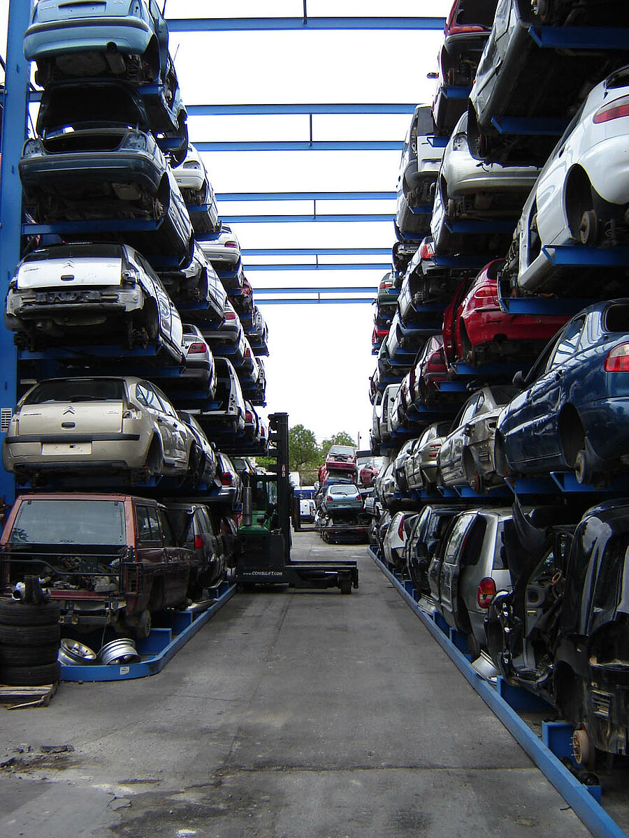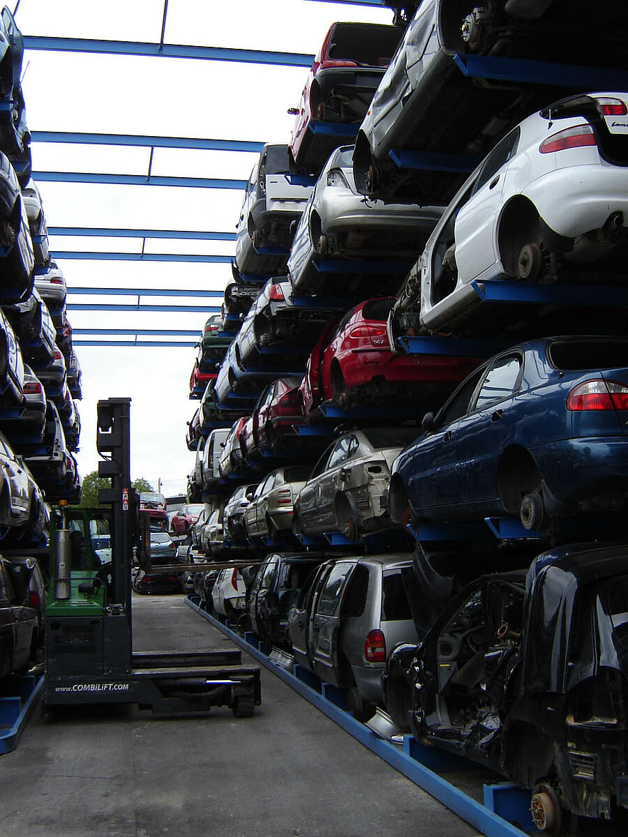 Grâce aux systèmes de rayonnage, chaque véhicule est placé, dès son arrivée dans le centre de recyclage, à un endroit précis qui lui est réservé sur la durée. Ainsi, tous les éléments restent intègres. Si la base de données contient une portière de type « A », il ne fait alors nul doute que celle-ci pourra être récupérée dans un parfait état. L’environnement est ainsi respecté, au même titre que le taux légalement prescrit pour le recyclage et la récupération des véhicules usagés. Pour les entreprises, ceci se traduit également par des répercussions extrêmement positives sur le plan économique. Les pertes en raison de pièces endommagées ou égarées n’ont en effet plus raison d’être.