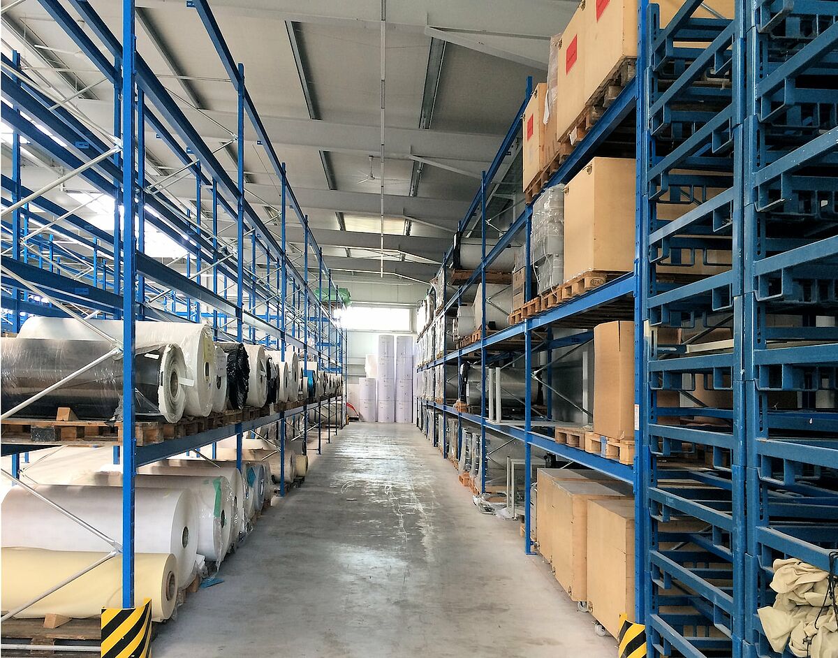 Forever est reconnue internationalement pour ses produits dédiés à l'impression numérique par transfert et compte des clients dans plus de 100 pays. Les capacités de stockage ont dû être étendues en rapport pour le papier et les produits chimiques nécessaires. Pour ce faire, l'entreprise a non seulement construit de nouveaux entrepôts de stockage, mais a aussi remplacé les rayonnages dans l'ancien magasin. Forever a alors décidé d'utiliser les systèmes de rayonnage OHRA : grâce à l'utilisation de profilés métalliques laminés à chaud pour tous les éléments porteurs, on obtient une capacité de charge très élevée. Celle-ci est nécessaire pour entreposer en toute sécurité sur les rayonnages à palettes les containers dont le poids peut atteindre 1,5 tonne et les rouleaux de papier pouvant peser jusqu'à 1,3 tonne. Le cantilever à bras portant permet en outre le stockage sans heurt d'autres rouleaux de papier allant jusqu’à 160 cm de diamètre et pesant jusqu'à 800 kilogrammes : pour ce faire, les bras portant ont une structure en « tube rond ». Un tronc de cône en hêtre placé à l'extrémité des bras permet de pousser en douceur les rouleaux de papier et leur enveloppe sur le bras. Au total, il est possible de stocker 92 de ces rouleaux de papier dans le rayonnage à bras portant d'une longueur de 26,4 mètres et d'une hauteur de 5 mètres. OHRA a exactement adapté les rayonnages cantilevers et les rayonnages à palettes aux exigences (d'espace) de Forever, qui a pu définir elle-même toutes les dimensions. Ceci permet une utilisation optimale de l'espace disponible et une augmentation de plus de 30 pour cent de la capacité de stockage par rapport à l'ancien système de rayonnage présent dans la zone de stockage.