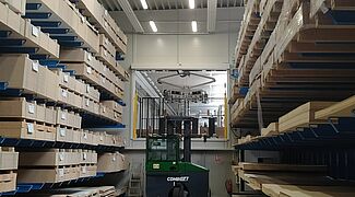 Le nouveau bâtiment de l'entreprise est la suite logique de l'évolution de Gerbrich, qui est passée d'une petite menuiserie fondée en 1897 à une entreprise de production dotée des techniques les plus modernes. La production hautement efficace nécessite un approvisionnement fiable des matériaux nécessaires - panneaux de particules et stratifiés, revêtements de portes et autres composants nécessaires à la fabrication des portes.