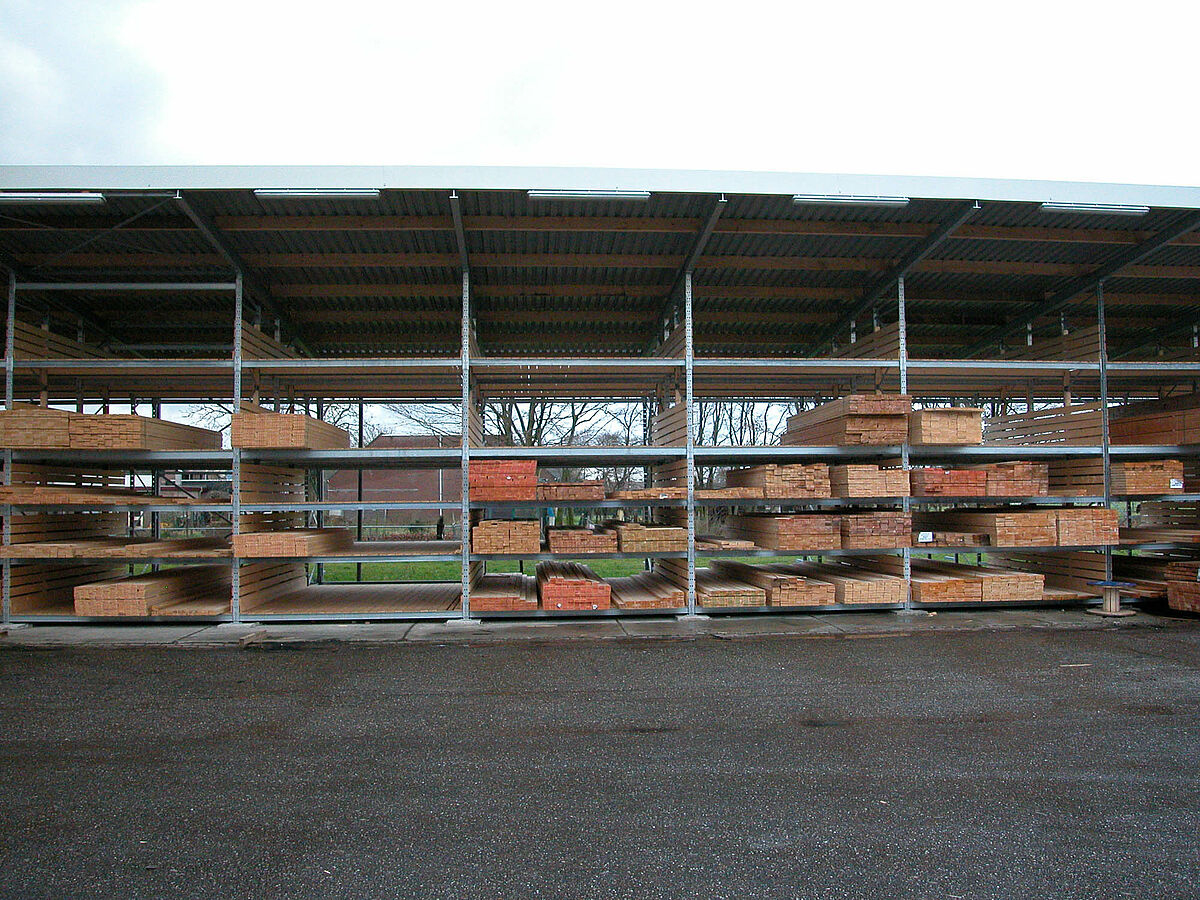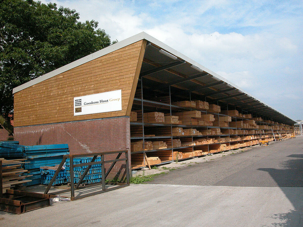 Les deux niveaux de stockage de l’entrepôt de bois extérieur du site, construit par le groupe, devenaient cependant insuffisants, d’autant plus que les clients de Gooskens rationalisent également leurs processus et minimisent les stocks en magasin. En conséquence, les fournisseurs de bois doivent renforcer leurs capacités afin de garantir une livraison rapide et sûre. Pour cette raison, Gooskens décida de construire un nouvel entrepôt doté des caractéristiques suivantes : l'entrepôt serait structuré en rayonnages alvéolés, autrement dit, les poutres et lattes de bois sont insérées dans le sens de la longueur dans des casiers de 6 500 mm de profondeur. Ceci assure un meilleur aperçu des profils stockés ainsi qu'une préparation manuelle rapide.