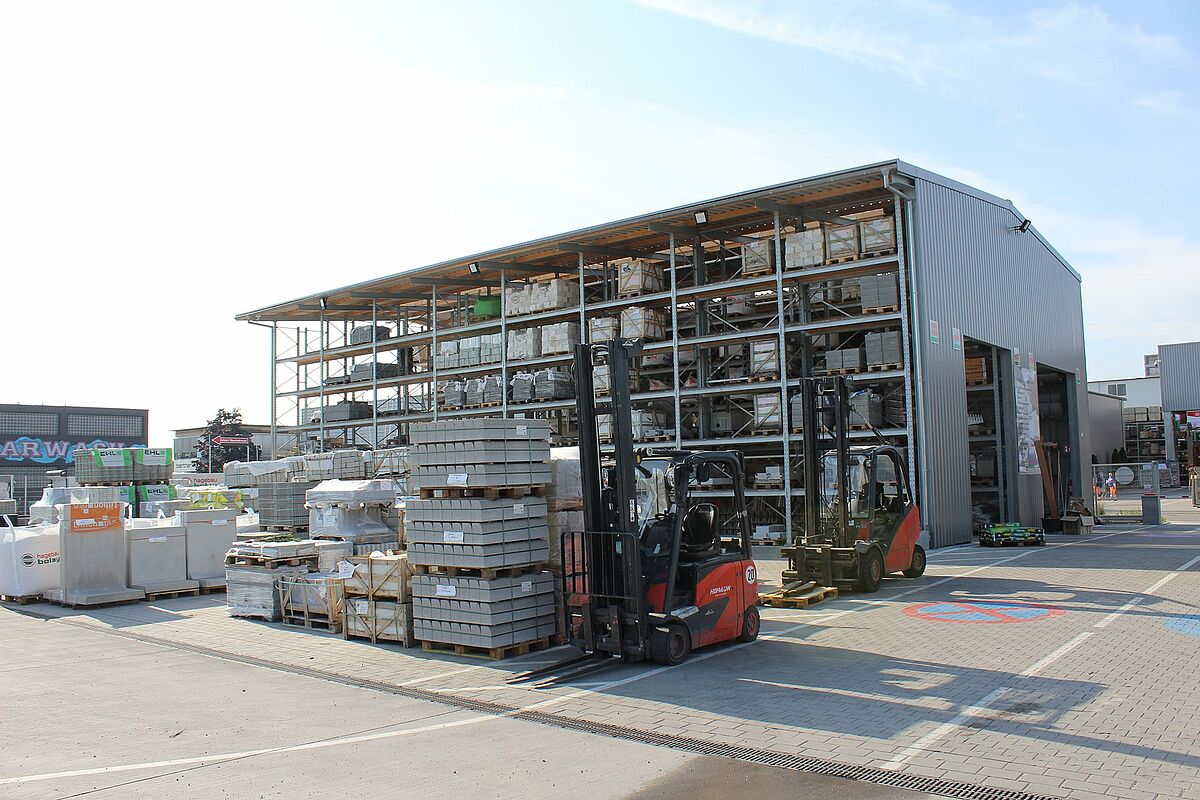 Hagebaucentrum Bolay, dont le siège social se situe à Rutesheim, près de Stuttgart, a créé un nouvel espace pour ses articles de jardinage et paysagistes grâce aux rayonnages cantilever avec bras mobile et rayonnages à palettes de OHRA. La réalisation du nouvel espace de stockage sous la forme d’un hall sur rayonnages partiellement fermé a permis de réduire le temps de construction à un minimum. Pour ce faire, les supports des rayonnages servent en même temps de structure porteuse pour le toit et les murs.