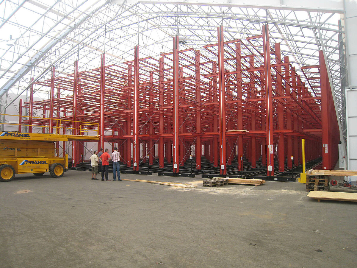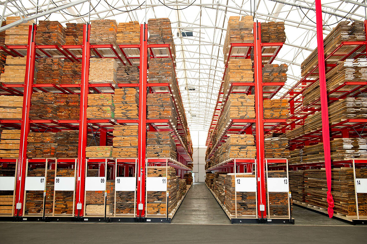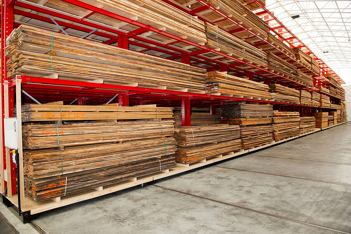 Dans son entrepôt central de Graz – la grande surface du bois –, Hechenblaickner propose sur une surface de 20 000 m2 du bois de sciage et de placage, des panneaux en bois massif ainsi que des produits semi-finis pour la construction de fenêtres et portes. Jusqu'alors, les marchandises étaient stockées en piles à même le sol. Dû à la variété croissante d'articles stockés, de plus en plus de manipulations étaient nécessaires. Dans le cas des paquets de jusqu'à 6 m de long, de plus d'1 m de large et pesant jusqu'à 3 000 kg, cela prenait beaucoup de temps ; de surcroît, les manipulations fréquentes causaient régulièrement des dommages aux produits en bois stockés.