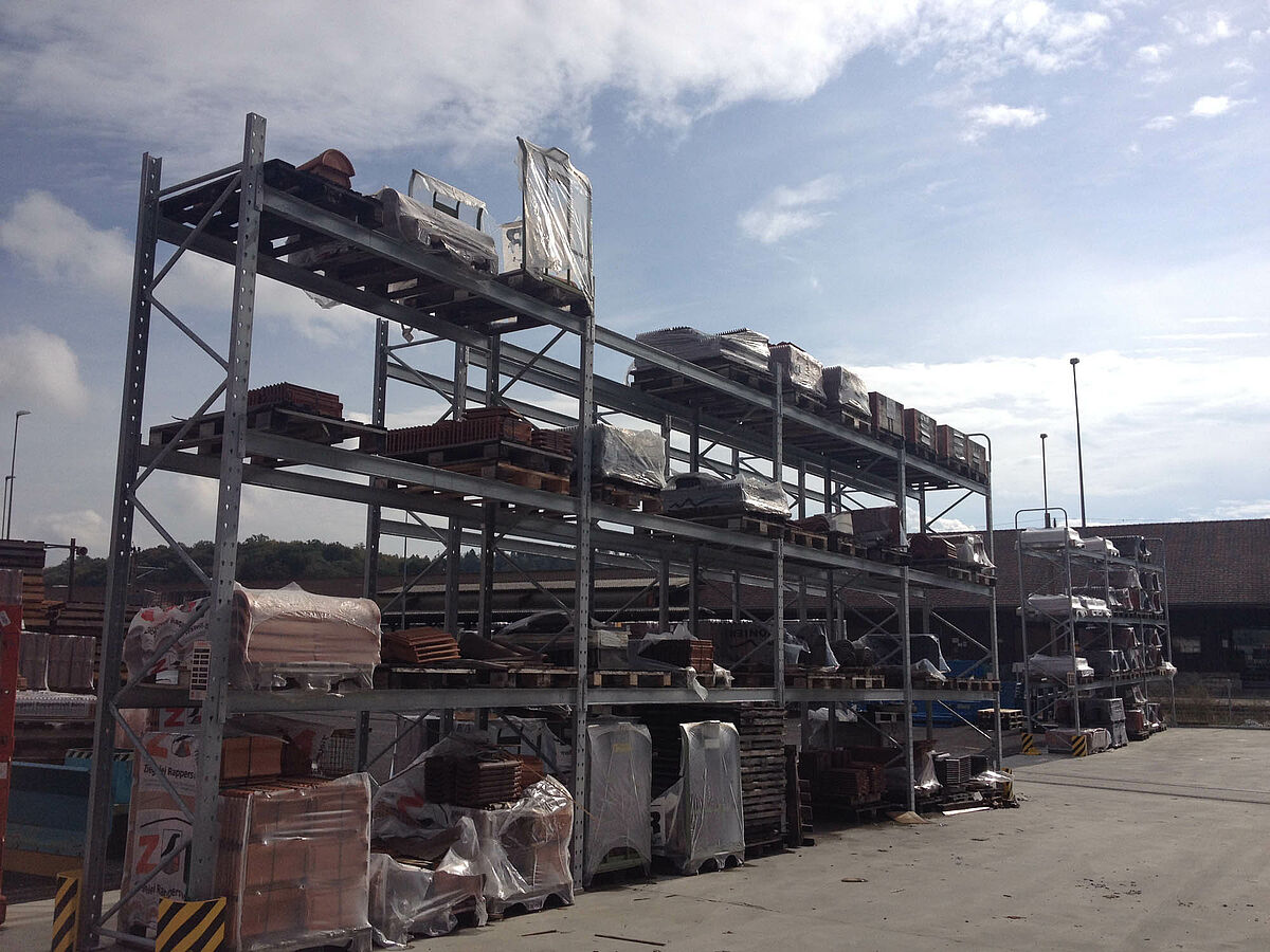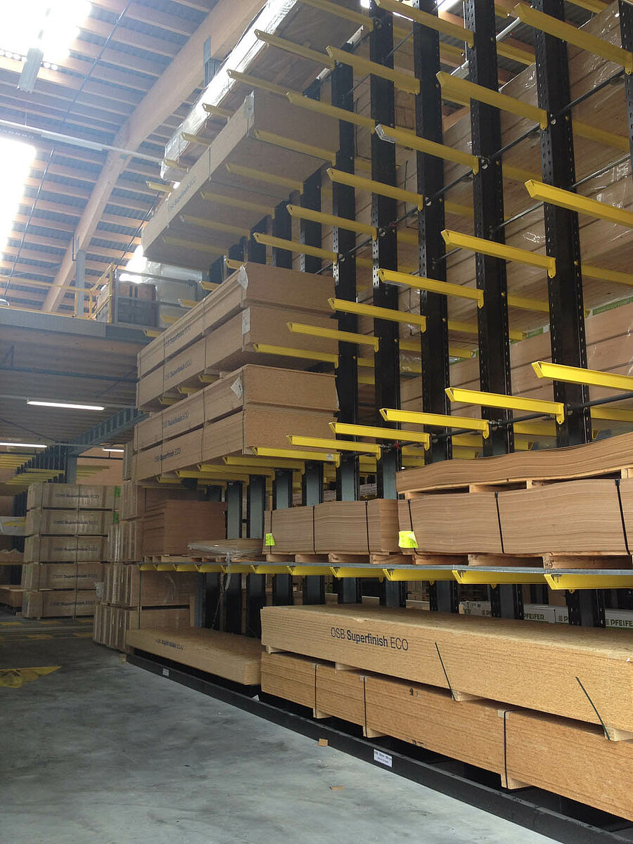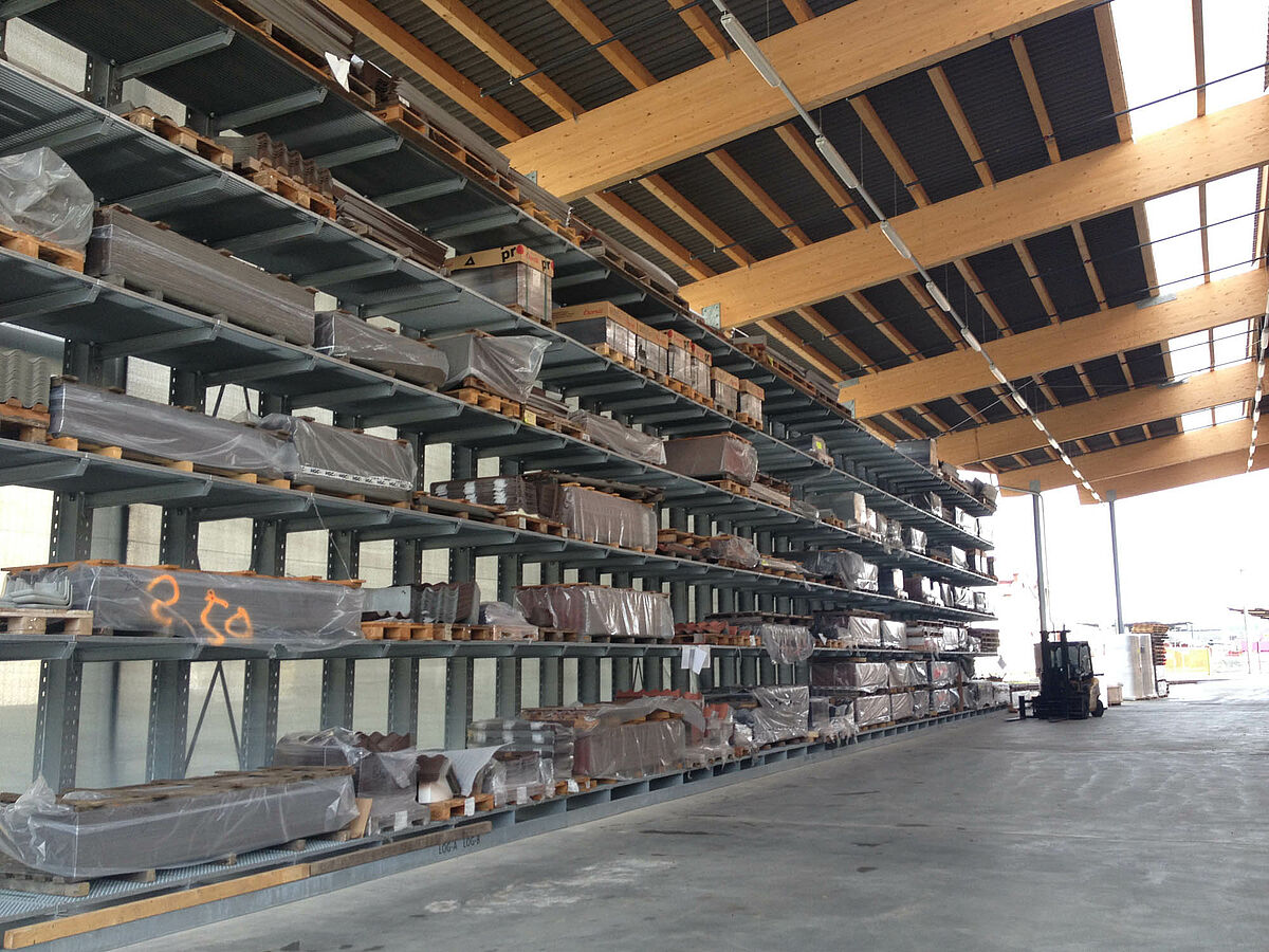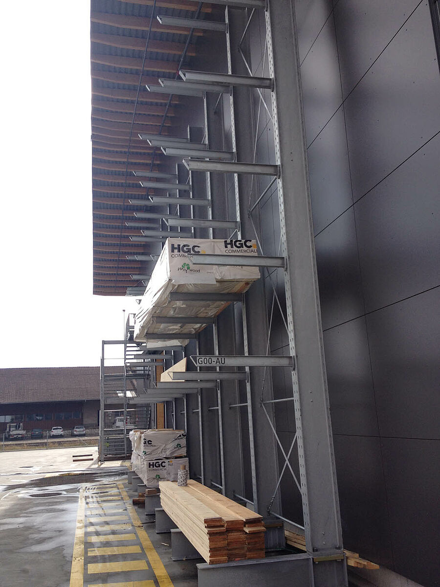 L'entrepôt de Bienne est réparti sur une superficie de 300 mètres carrés en deux zones de stockage traversant. Dans le hall, OHRA a monté près de 600 mètres de rayonnages à bras portants de 9 mètres de haut, avec six niveaux de stockage et des bras portants de 2,5 mètres de large, qui sont desservis par des chariots élévateurs à quatre voies. Les rayonnages verticaux en fin de rangées permettent également un stockage méthodique des barres, profilés et autres tuyaux et tubes. Les rayonnages à palettes et à bras portants en finition galvanisée à chaud pour l'extérieur peut accueillir 600 palettes supplémentaires. Pour le stockage des matériaux isolants, une mezzanine de 1000 mètres carrés est intégrée dans la construction du hall.