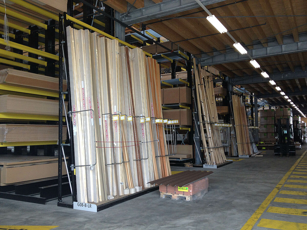 HG COMMERCIALE (HGC), l'une des principales sociétés commerciales suisses du bâtiment a agrandi son bureau de vente, sis à Bienne (canton de Neuchâtel), avec des systèmes de rayonnages d'OHRA. Une combinaison sur mesure de rayonnages à bras portants, à palettes et d'étagères verticales peut accueillir un large éventail de matériaux de construction. L'entrepôt couvert a été conçu comme type de stockage traversant (drive-through) - les clients traversent l'entrepôt dans un sens et retirent leurs marchandises directement des différents rayonnages.