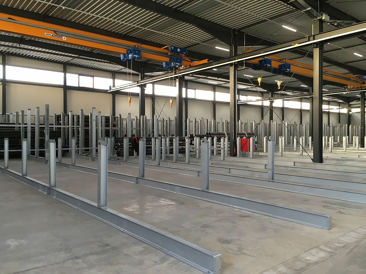Alors que les tubes lourds et longs ou les faisceaux de tubes sont stockés dans les rayonnages à chandelles, les tubes légers, quant à eux, trouvent place dans les rayonnages cantilever d'OHRA. Des étagères galvanisées d'environ 5 mètres de haut ont également été prévues sur les pourtours des murs intérieur et extérieur de l’entrepôt. Les mandrins enfichables et les manchons aux extrémités des grues, mesurant 1,4 mètre de long et disposant d’une capacité portante de 640 kg, garantissent un stockage sûr des tubes.