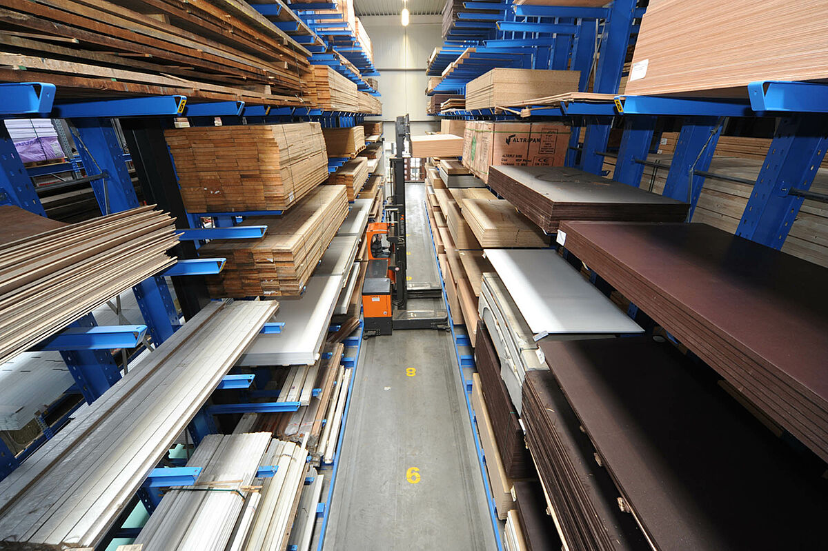 Pour stocker au mieux bois, plaques et matériaux de construction, OHRA installa, en deux mois seulement, 11 rangées de rayonnages à bras portants de 36 mètres de longueur ainsi que deux rangées de rayonnages à palettes. D’une hauteur de 9 mètres, ces rayonnages permettent d'exploiter au mieux l'espace disponible et de réduire les trajets des chariots élévateurs à 4 voies. Avec des largeurs de compartiment de 2 700 millimètres, les rayonnages à palettes offrent un total de 462 emplacements sur 6 niveaux. Les rayonnages à bras portants permettent quant à eux de stocker plaques et bois longs sur neuf niveaux, avec une longueur de bras variant entre 1100 et 1550 millimètres. ITS étant également spécialisée dans la distribution de bois durs et lourds, certaines zones de rayonnage ont également été conçues pour supporter des charges lourdes.