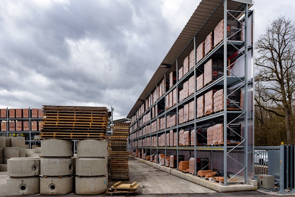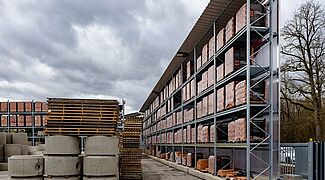 Kraft Baustoffe, s’étant auto-présenté comme le plus grand négoce des matériaux de construction dans la région de Munich, a érigé l’entrepôt extérieur de sa nouvelle succursale de Höhenkirchen-Siegertsbrunn à base de rayonnages cantilevers et à palettes d’OHRA. Les rayonnages sont non seulement dotés de toits, mais aussi - à cause de strictes exigences en système d’insonorisation - d’une paroi arrière qui sert d’isolation acoustique.