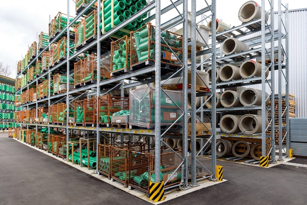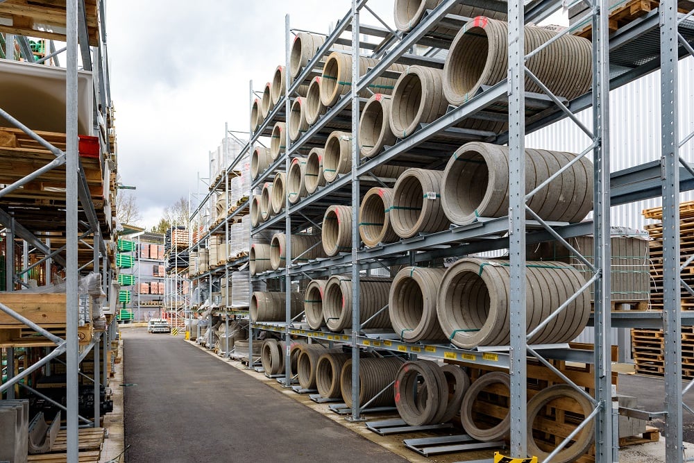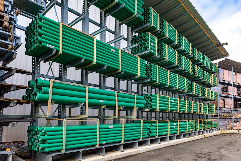 Pour le stockage de cette multitude de matériaux, Kraft a réhabilité son nouvel entrepôt extérieur avec des palettes et de rayonnages cantilever d’OHRA. Déjà dans d’autres succursales, leur qualité a su convaincre le négoce de matériaux de construction. Car OHRA n’utilise que des profilés en acier massif pour les montants de ses étagères. C’est ce qui offre aux rayonnages une capacité portante élevée et une forme élancée. Les rayonnages à palettes ont une capacité par niveau atteignant 4500 kg, les rayonnages cantilevers prennent jusqu’à 5000 kg par face et chaque bras peut supporter jusqu’à 1000 kg.