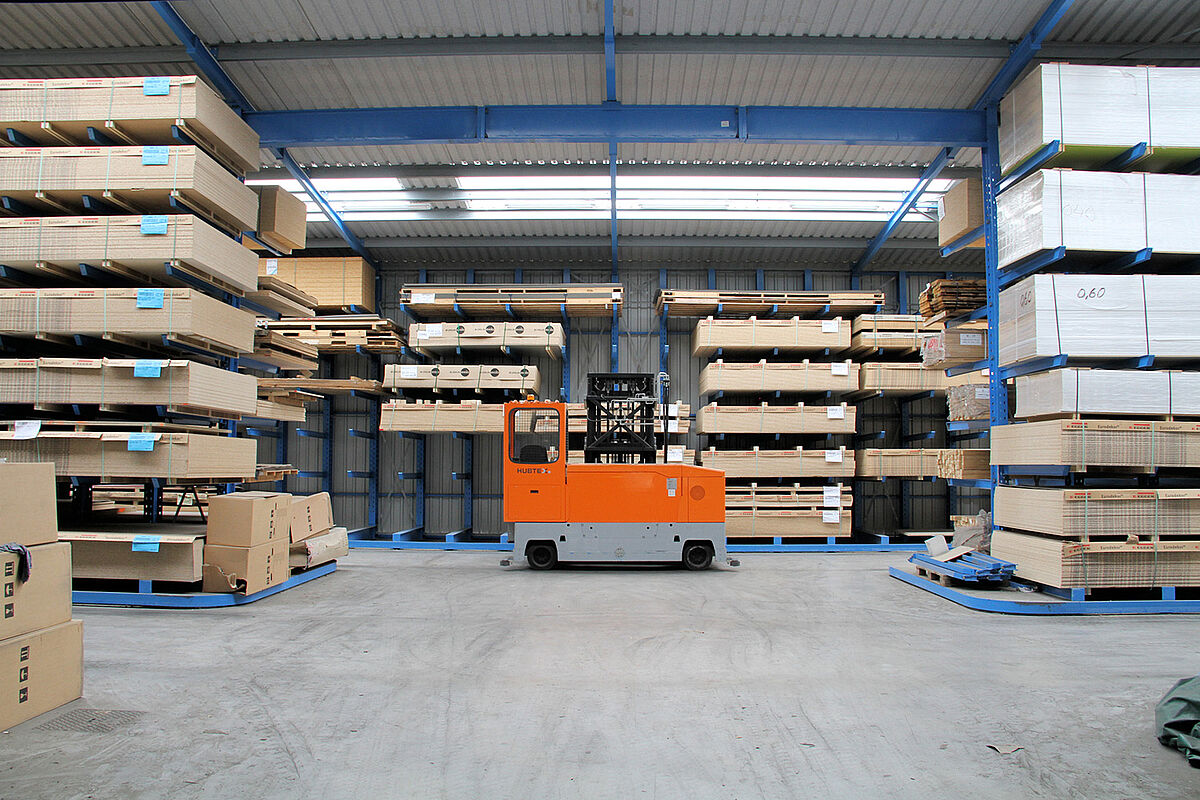 Gedimat Laboissiere, la société française de négoce du bois, a considérablement augmenté sa capacité de stockage de panneaux avec un nouveau hall á rayonnages á bras portants. Les rayonnages cantilever OHRA ne servent pas seulement de support pour la construction du hall, mais réduisent également les dommages aux panneaux de bois stockés grâce à leurs bras mobiles.