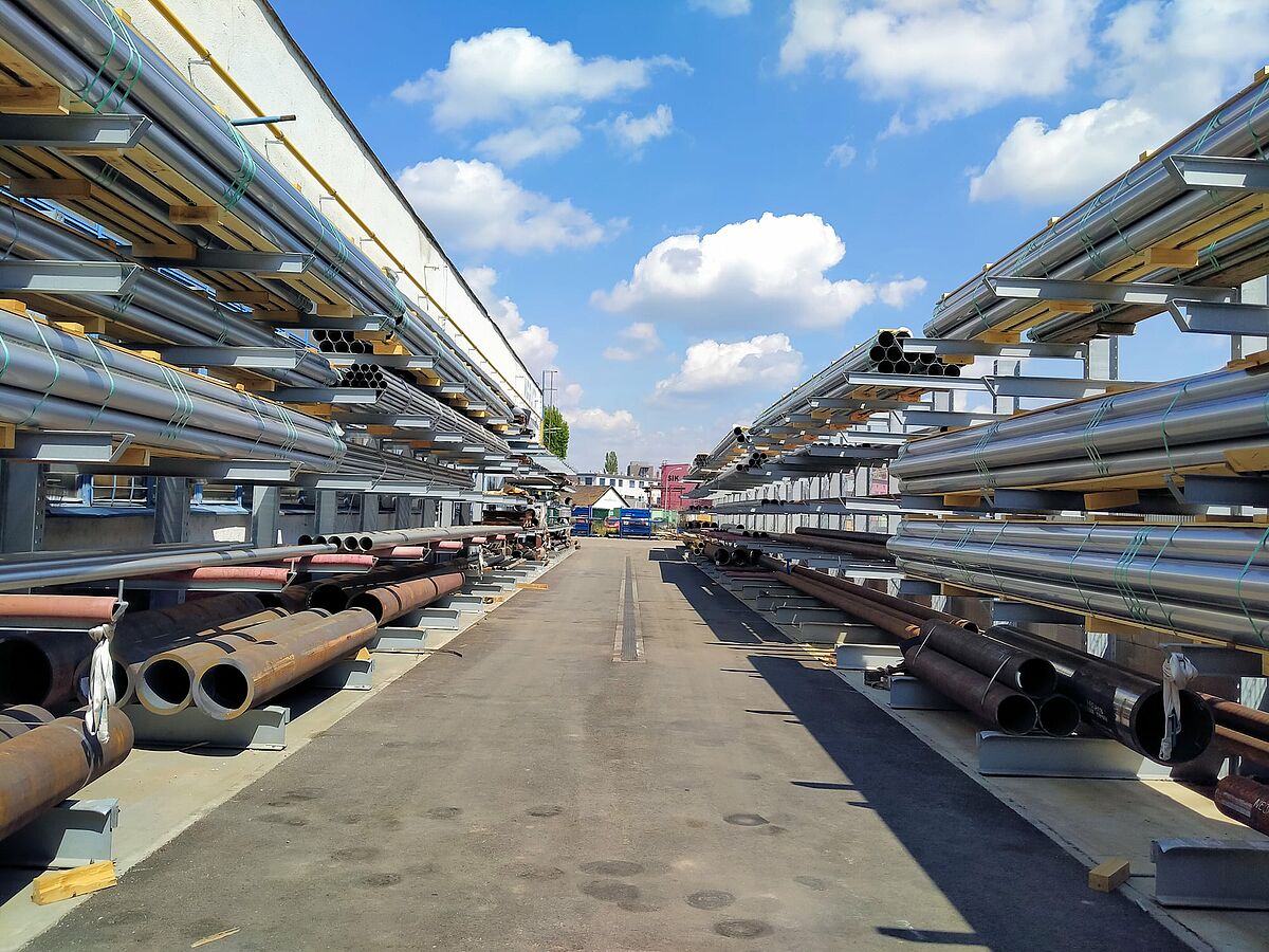 Le système de rayonnage d’OHRA a notamment séduit Mebatex par sa robustesse et sa stabilité : Étant donné qu’OHRA fabrique tous les éléments porteurs des rayonnages qu’à partir de profilés d'acier massifs, ceux-ci offrent à la fois une grande capacité de charge et une forme élancée. En outre, OHRA a su adapter parfaitement les rayonnages aux besoins de Mebatex, afin que les différents tubes puissent être stockés de manière sûre et fiable. Ensuite, OHRA a installé, sur la zone extérieure, deux rayonnages cantilever simple-face avec une longueur totale de plus de 92 mètres.