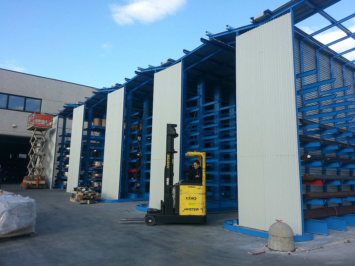 Rosa Catene fabrique sur le site de Caloziocorte des chaînes destinées aux applications agricoles, industrielles et commerciales. La croissance continue de l'entreprise a imposé la construction d'un nouveau dépôt de matériaux bruts pour des bandes de tôle palettisées et des barres d'acier ligaturées. OHRA a reçu la commande pour la construction de l'entrepôt : Le spécialiste des systèmes de rayonnage, basé à Kerpen, Allemagne, a convaincu Rosa Catene avec un concept suggérant que les montants des rayonnages à bras portants devaient tenir lieu de construction portante pour le hall. Dans le concept proposé, les éléments de toit des six rangées de rayonnage se chevauchent mutuellement, et constituent ainsi un entrepôt modulaire et entièrement couvert pouvant être agrandi ultérieurement sans problème. De plus, cette construction offre de nets avantages en termes de coûts et est plus vite dressé qu'un hall traditionnel.