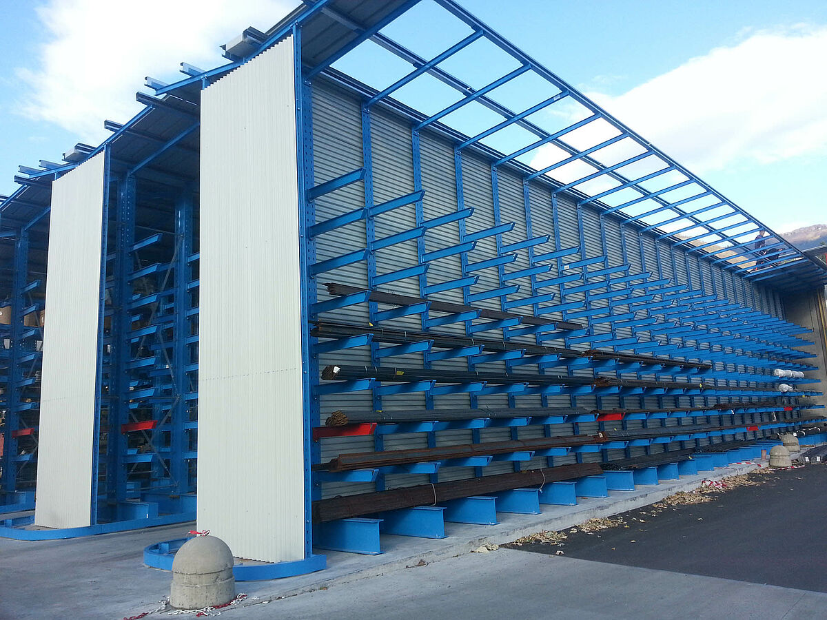 Le système de rayonnage à bras portants accrochés permet une haute flexibilité - les emplacements de stockage des divers matériaux peuvent être modifiés et échangés en fonction des exigences.