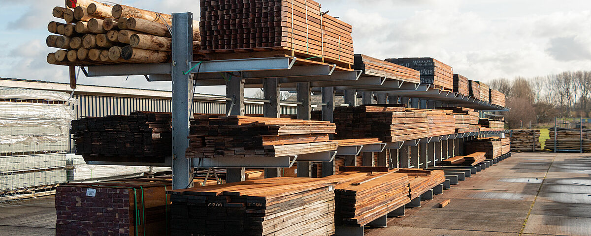 La clientèle s’étant rapidement accrue au cours des dernières années, et la surface d’entrepôt de 18.000 mètres carrés à l’intérieur et à l’extérieur n’ayant pas pu être étendue, Van Dorp Hout décida d’augmenter les capacités de stockage avec les rayonnages cantilever OHRA. Dès 2019, l’entreprise installa des rayonnages cantilever d’une hauteur de 5 mètres avec toit d’une longueur de 48 mètres, ainsi que 55 mètres supplémentaires de rayonnages cantilever de diverses hauteurs. En 2020, d'autres rayonnages suivirent alors : 48 mètres de rayonnages avec une hauteur de 5 mètres avec toit en guise de protection contre les intempéries pour les bois entreposés, 20 mètres de rayonnages de la même hauteur sans toit, et environ 70 mètres de rayonnages cantilever avec des hauteurs comprises entre 2 et 2,5 mètres. En 2021, 10 mètres supplémentaires de rayonnages OHRA suivirent alors : 40 mètres supplémentaires sur des rayonnages d’une hauteur de cinq mètres avec toit ainsi qu’un certain nombre de rayonnages plus petits différents sans toit.