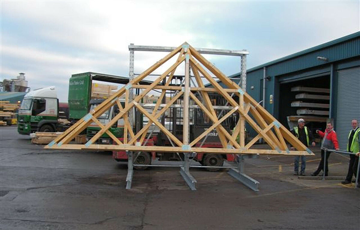 La société Walker Timber Ltd. est spécialisée dans la fabrication de fermettes et d'ossatures en bois, elle a son siège social à Bo’ness près d'Edimbourg (Ecosse). Cette société avait besoin d'une installation d'entreposage pour les fermettes neuves sortant de fabrication. Ces dernières devaient être entreposées à l'extérieur jusqu'à l'expédition, dans des conditions permettant un chargement aisé et sans risque sur les camions.