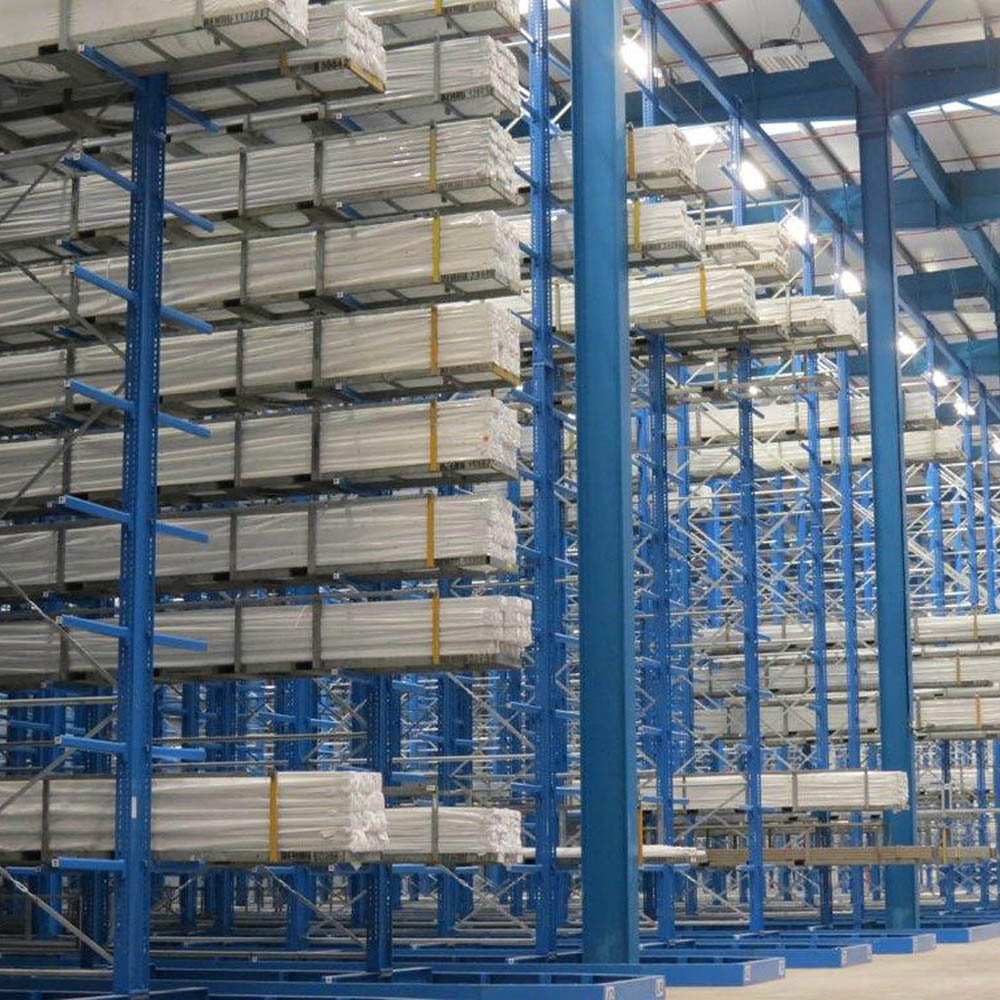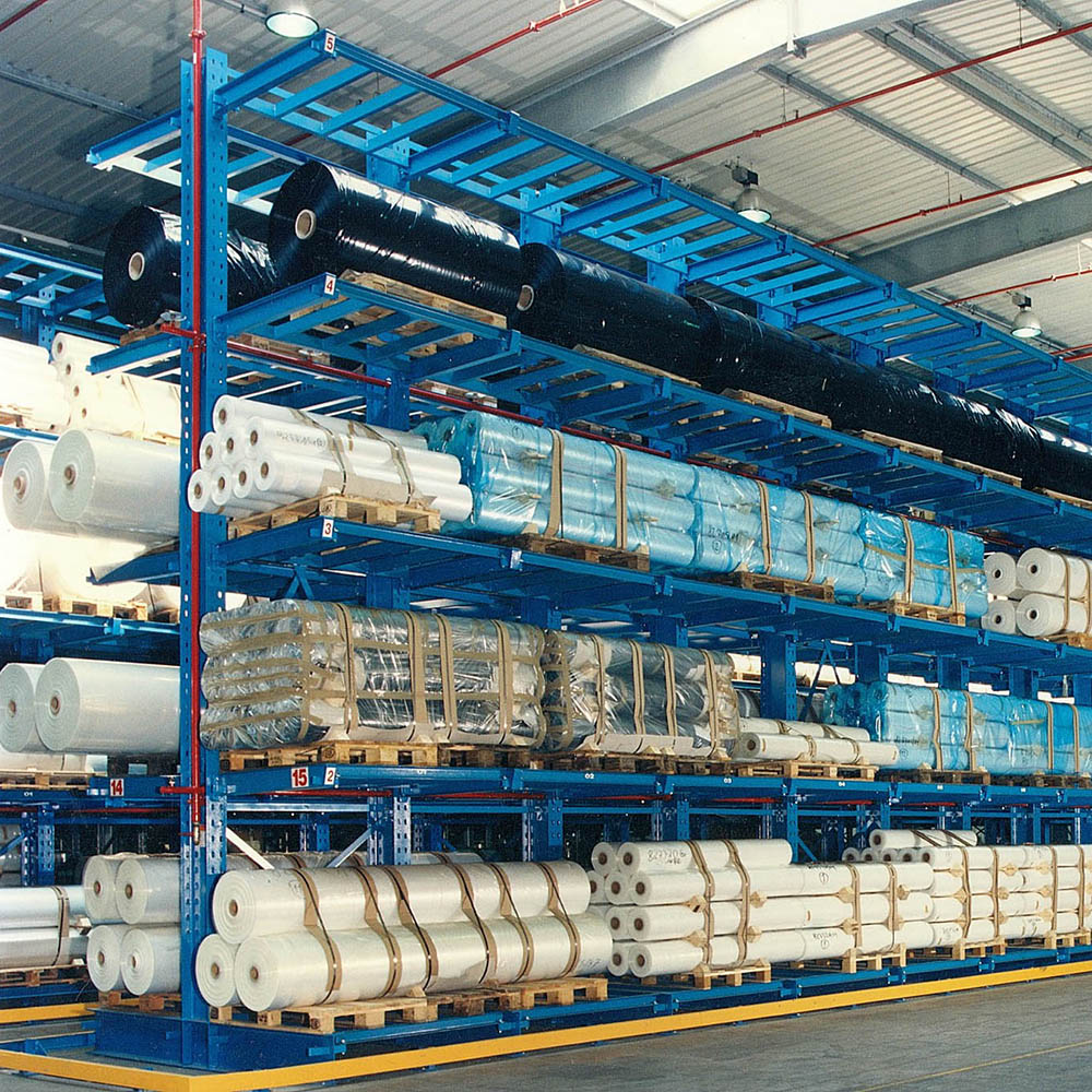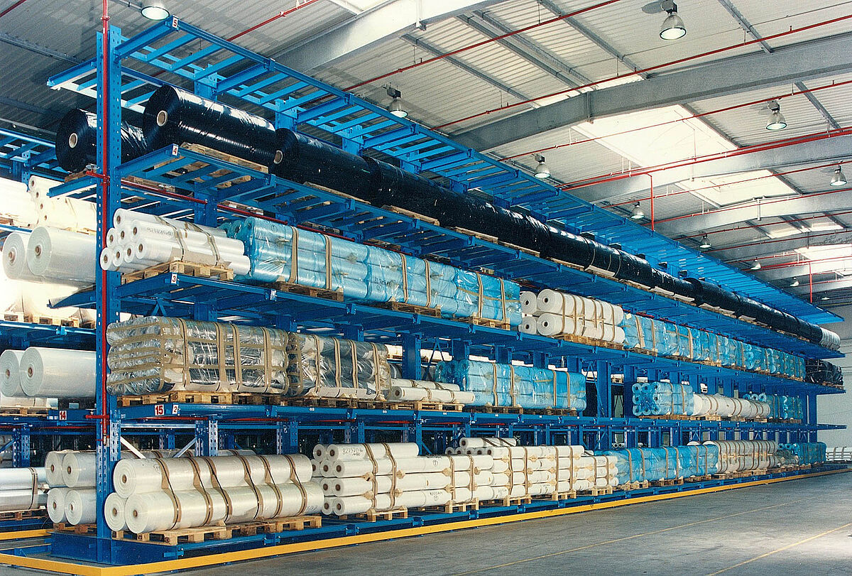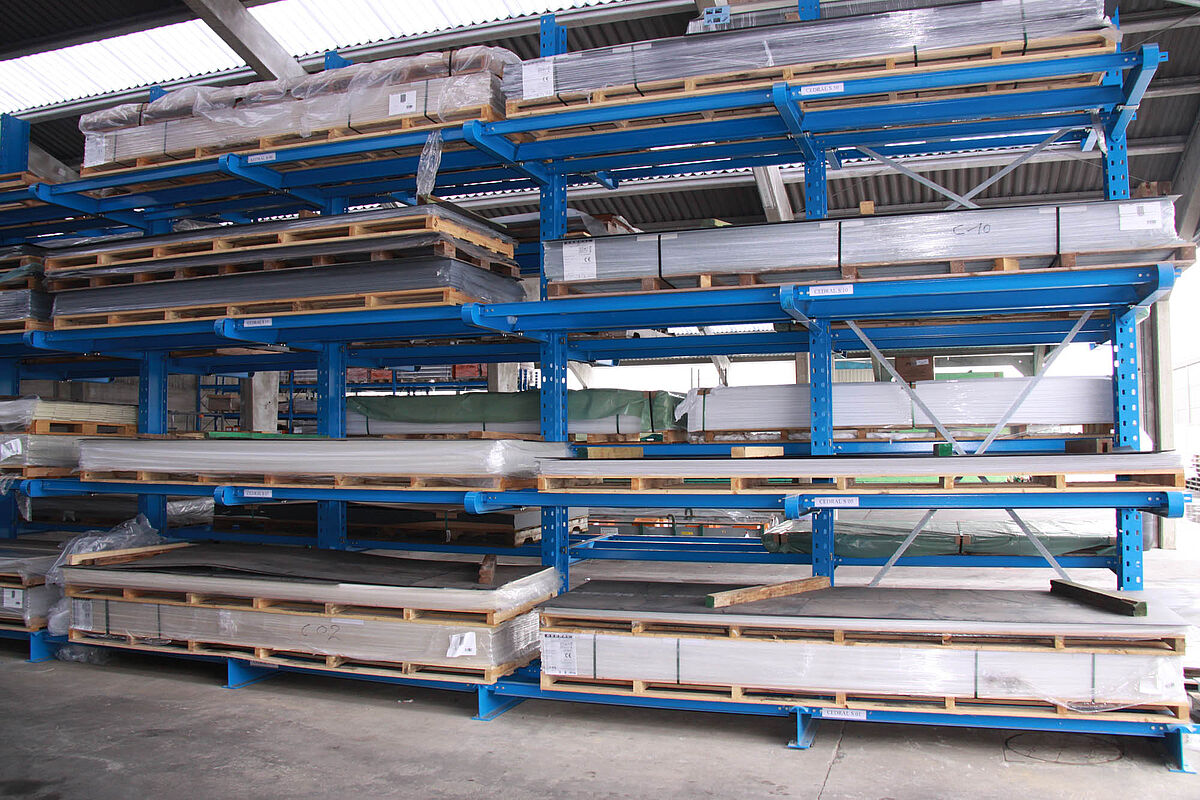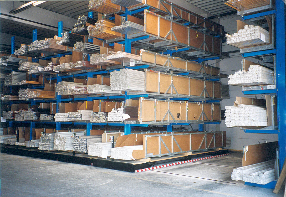 Pour l'aluminium et le plastique, les rayonnages cantilevers sont la solution de stockage idéale pour les produits longs de toute forme ou texture. Profilés en Aluminium et en plastique, tuyaux en PVC et plaques, tuyaux de descente, châssis de fenêtre, gouttières et autres articles longs peuvent être stocker et prélever avec ce système de stockage.