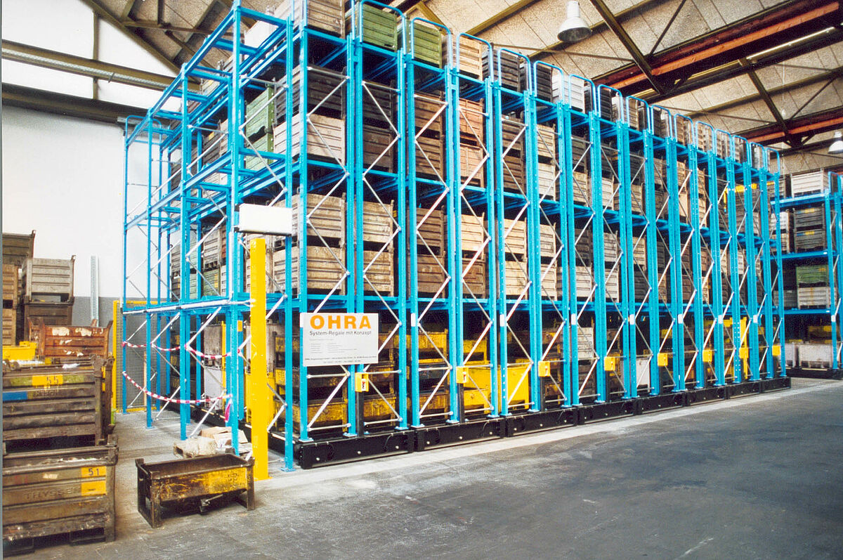 Particulièrement dans le secteur de la métallurgie, les systèmes de stockage doivent répondre à différentes exigences et satisfaire également à des standards de sécurité élevés de l'entreprise. Ils doivent également être flexibles et s'adapter à des capacités de production variables. Pour les charges lourdes notamment les paquets de tôle, les bobines d'acier de poids et diamètres différents ou le stockage d'outils lourds, les systèmes de rayonnages OHRA à encombrement réduit ont prouvé leur fiabilité. Parmi ces systèmes, on trouve notamment les rayonnages à palettes en acier, robustes et à grande capacité de charge.