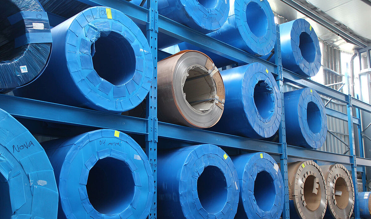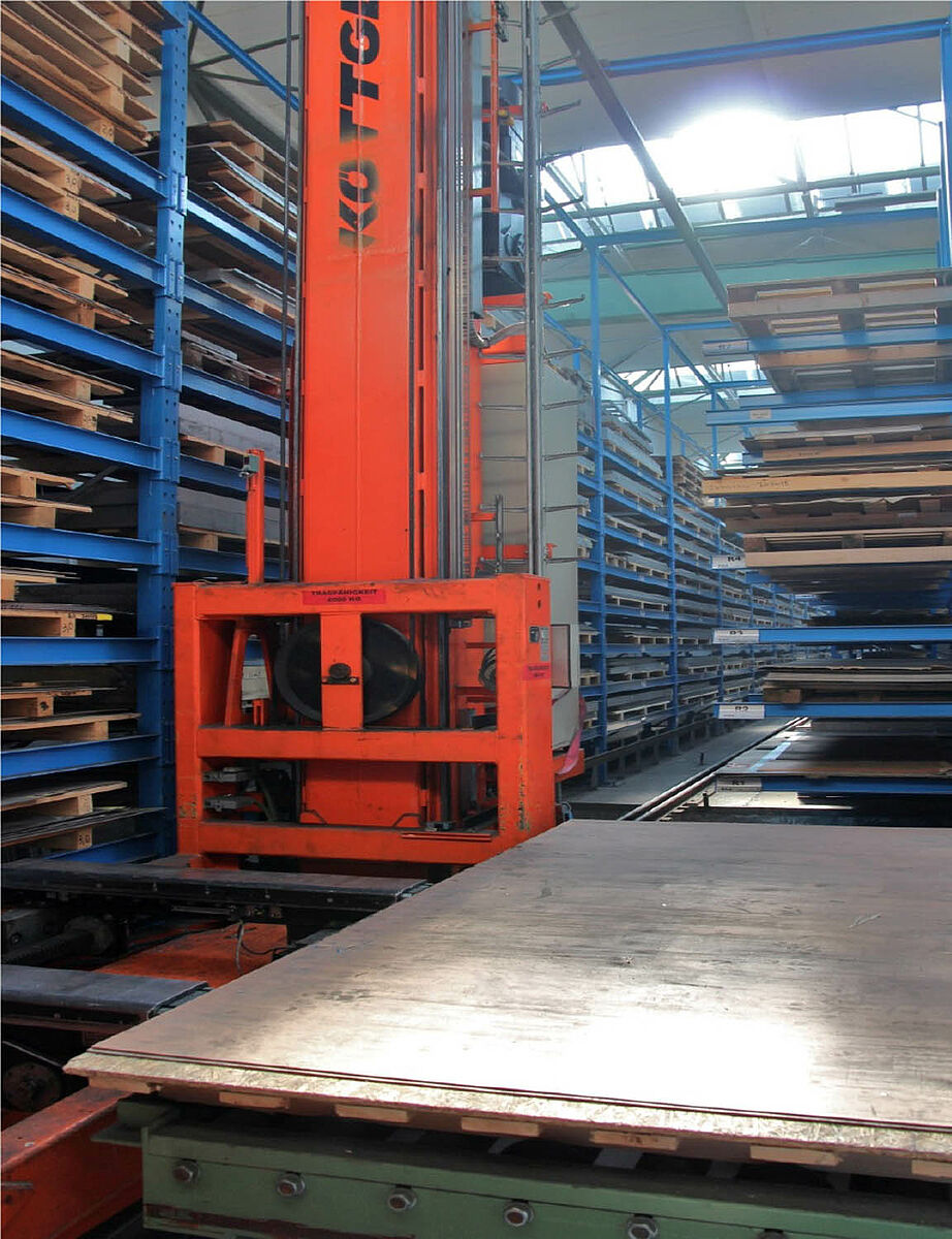 Le stockage d'acier et de produits métallurgiques lourds pose à l'entreprise des contraintes particulières. L'accès sélectif sur différentes dimensions de marchandise, un flux de matière optimal ainsi que la préparation rapide des commandes client doivent être synchronisés et garantis à tout moment.