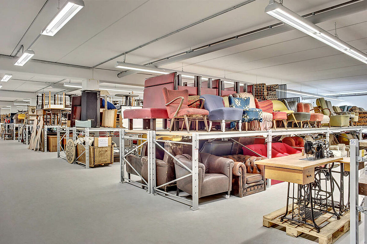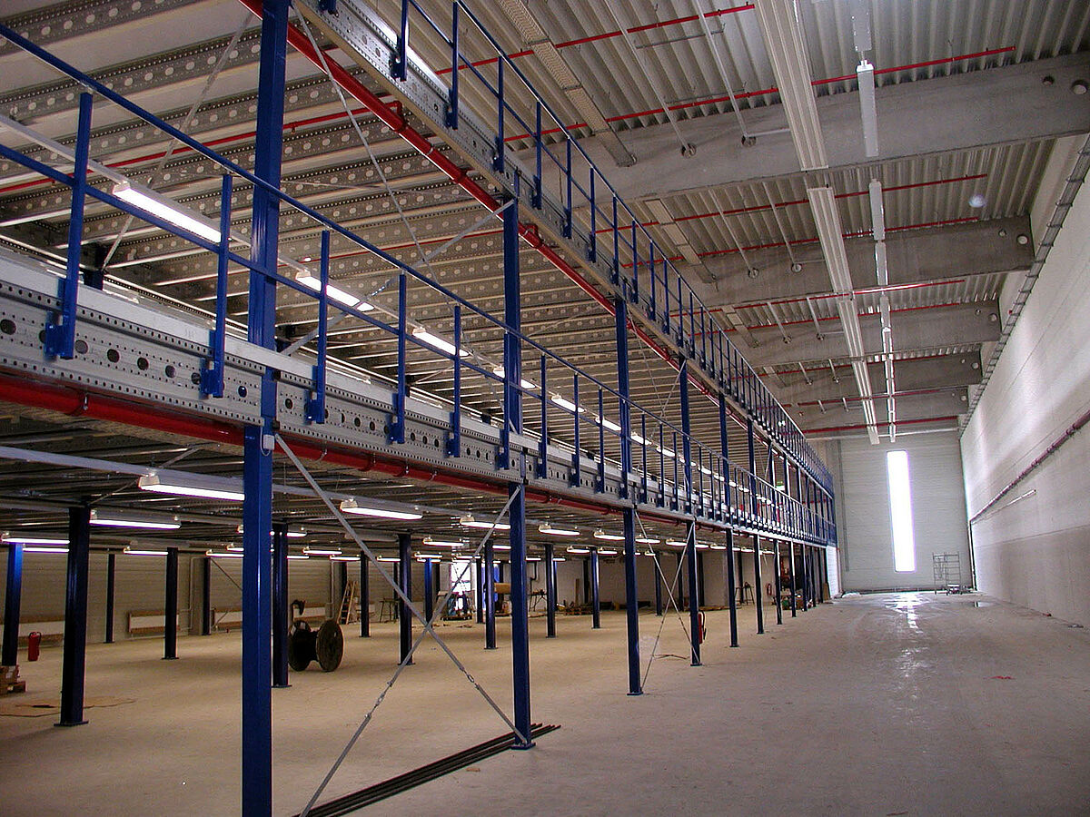 Le montage de mezzanines robustes pour entrepôt permet un stockage sur plusieurs niveaux. Convient parfaitement pour l’entreposage de meubles, lampes, décoration et costumes.