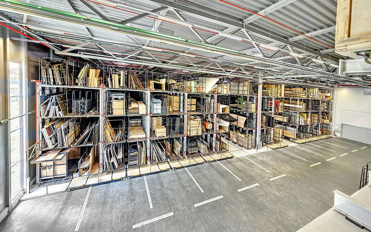 Pour la fabrication et la réparation de scènes, on a besoin une pluralité de matériaux avec dimensions et poids différentes. Les rayonnages verticaux robustes garantissent une capacité de charge élevée – en particulier pour des objets lourds, peu maniables et encombrants – et une manutention rapide dans l’atelier.