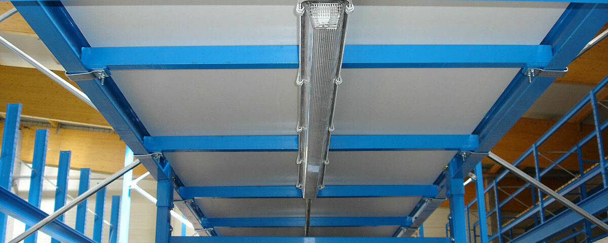 Les mezzanines sur rayonnages à palettes OHRA sont des mezzanines basées sur les rayonnages à palettes OHRA qui font office de structure portante. Les différentes rangées des rayonnages à palettes sont reliées horizontalement aux profilés en acier, de manière à ce que les divers revêtements de sol (par ex. caillebotis ou panneaux d’aggloméré) viennent former une aire de stockage entre les rayonnages. Cela permet d’exploiter le moindre centimètre de l’entrepôt et de ne pas perdre la place disponible. Il est possible de réaliser plusieurs étages de stockage dans le système de rayonnage.