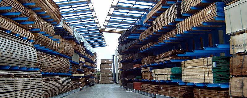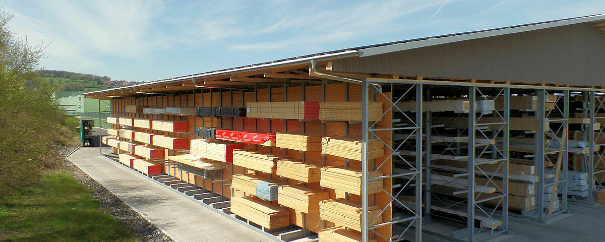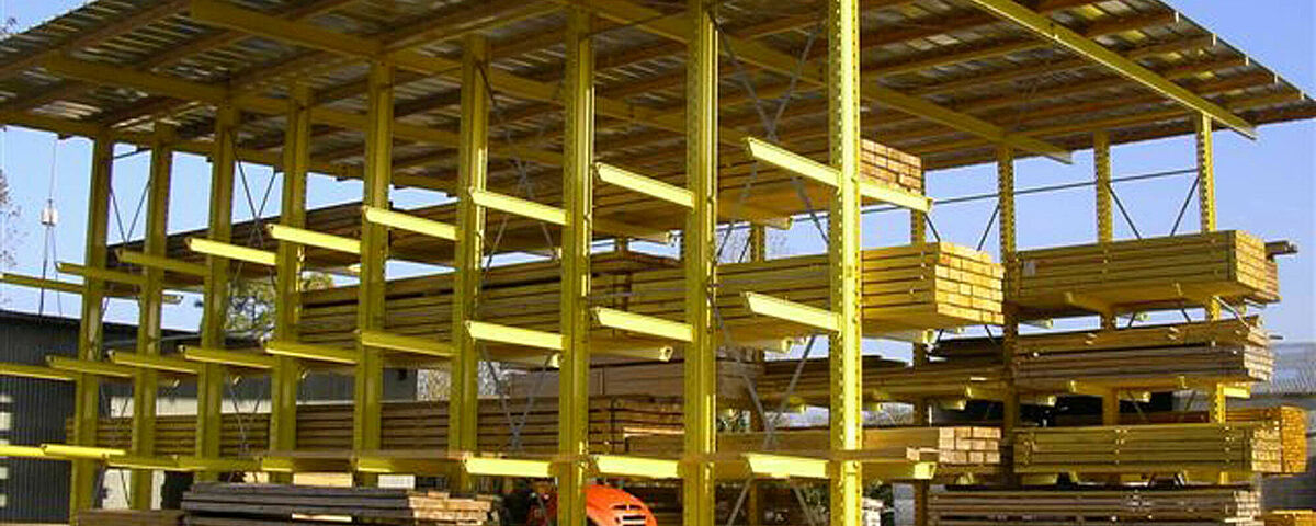 Halls à rayonnages pour le stockage du bois à l'abri des intempéries